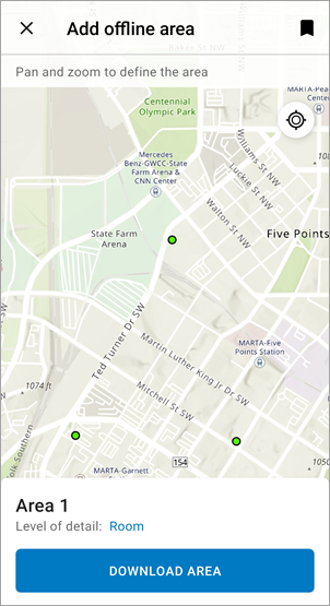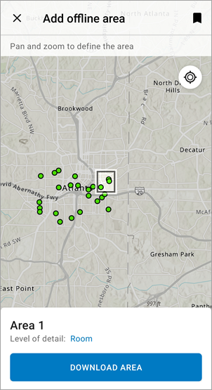If the map is configured for offline use, you can define and download a map area by completing the following steps: